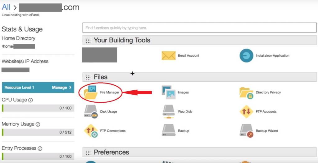 رابعا في هذه الخطوة ستكون قد وصلت إلى صفحة CPanel ، وستقوم بفتح File Manager تحت قسم Files.