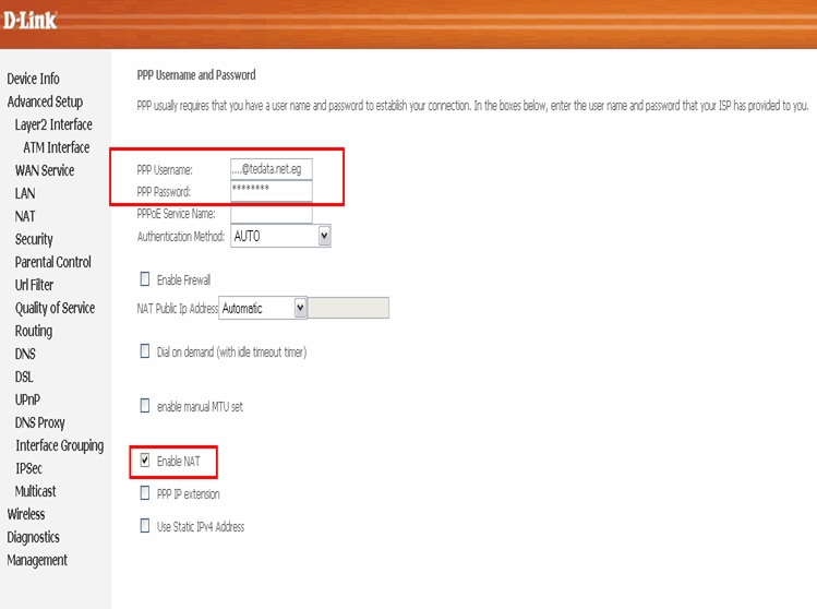 - عنوان ال IP الخاص بك الاى بى العالمى التى قد قمت بالحصول عليه من مزود الخدمة