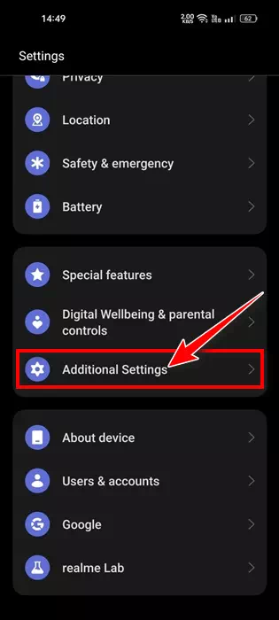 - عند فتح تطبيق الإعدادات، انتقل لأسفل وانقر على “الإعدادات الإضافية” أو “Additional Settings“.
