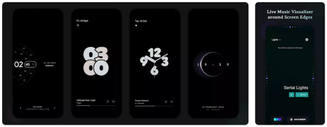 يختلف تطبيق Always On: Edge Music Lighting، المعروف أيضًا باسم Muviz Edge، عن جميع تطبيقات Always On Display الأخرى المدرجة في المقالة. إنه تطبيق يعرض متخيلًا للموسيقى الحية حول حواف الشاشة أثناء الاستماع إلى الموسيقى.