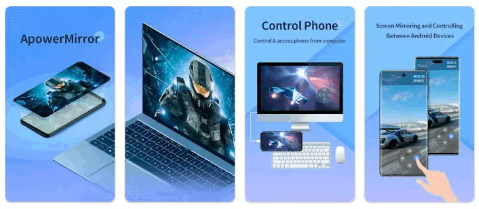 تطبيق ApowerMirror يعتبر واحد من أعلى التطبيقات تقييمًا على متجر Google Play لعرض الشاشة. يمكن لهذا التطبيق عرض شاشة هاتفك الذكي على أجهزة الكمبيوتر، أجهزة Mac، التلفزيون، وأجهزة محمولة أخرى.