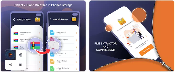 إنه تطبيق خفيف الوزن يكتشف تلقائيًا جميع تنسيقات الملفات المضغوطة المخزنة على الذاكرة الداخلية وبطاقة SD.