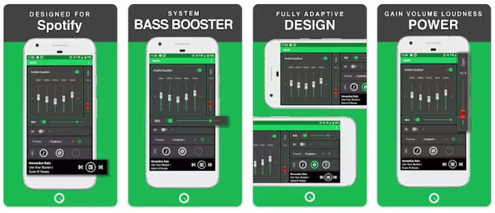 تطبيق SpotiQ هو تطبيق معادل الصوت الشامل المتاح لهواتف اندرويد. يدعم التطبيق خمسة مراحل ترددية للمعادلة الصوتية ويكتشف تلقائيًا مشغل الموسيقى الخاص بك.