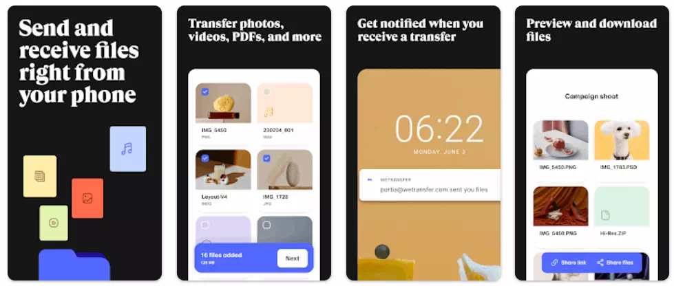تطبيق WeTransfer مختلف قليلاً عن Shareit أو أي تطبيق آخر في المقالة. بشكل أساسي، يتيح لك هذا التطبيق مشاركة الملفات مع أجهزة أخرى، لكن وسيلة المشاركة مختلفة.
