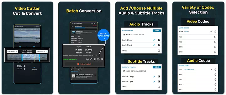 تطبيق Video Converter هو تطبيق محول فيديو متكامل متاح لنظام اندرويد. إنه محول فيديو يدعم جميع تنسيقات الفيديو والصوت تقريبًا.