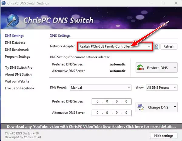 - أولاً ، قم بتنزيل وتثبيت برنامج Chris-PC DNS Switch على جهاز الكمبيوتر الذي يعمل بنظام ويندوز.