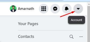 فيسبوك سهم القائمة المنسدلة - الخطوة الثانية. من القائمة التي تظهر ، انقر فوق خيار “الإعدادات والخصوصية أو Settings & Privacy“.