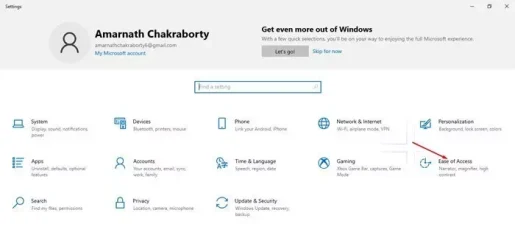 • من خلال صفحة الإعدادات ، قم بالنقر فوق خيار (Ease of Access) والذي يعني سهولة الوصول.