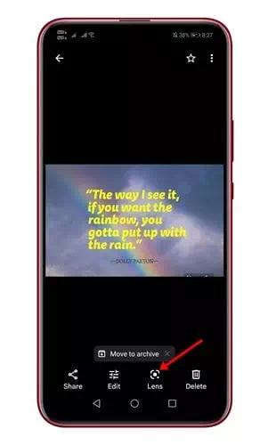 لذلك ، إذا كنت تستخدم تطبيق صور Google على جهاز يعمل بنظام Android أو iOS ، فيمكنك بسهولة نسخ النص ولصقه من الصورة. بعد ذلك تلتقط صور Google النص من الصورة باستخدام ميزة Google Lens المضمنة في التطبيق.