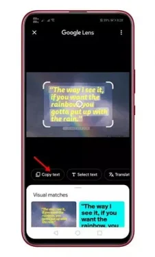 - الآن سيتم فتح تطبيق Google Lens وستكتشف النص المرئي. يمكنك تحديد جزء النص الذي تريده.