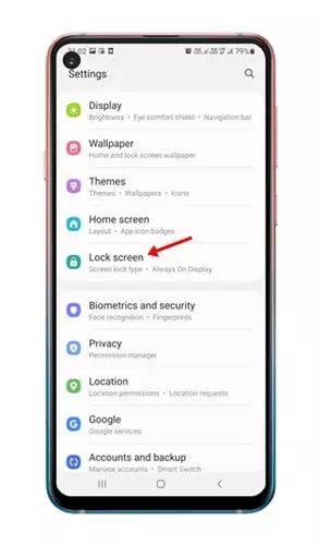 - في صفحة الإعدادات ، ابحث عن خيار (Lock Screen) قفل الشاشة وانقر عليه.
