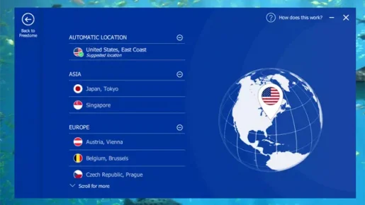 يقدم برنامج Freedome VPN خوادم في 20 دولة. حيث يمتلك خوادم مختلفة في جميع البلدان توفر لك سرعة تحميل وتصفح أنترنت أفضل.
