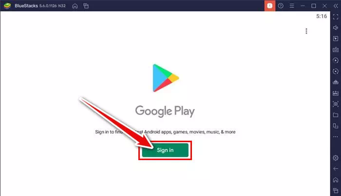 افتح BlueStacks وانقر على تطبيق Play Store - في متجر جوجل بلاي ، قم بتسجيل الدخول باستخدام حساب Google الخاص بك.