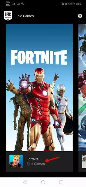 لتثبيت اللعبة على جهازك افتح ملف Fortnite - بمجرد الانتهاء من ذلك ، سترى شاشة كما هو موضح في الصورة التالية. ثم قم بالضغط على لعبة (Fortnite).