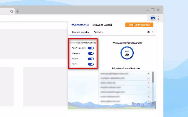 Malwarebytes Browser Guard هو امتداد لمتصفح الويب يزيل المحتوى غير المرغوب فيه وغير الآمن. هذا امتداد للمتصفح يهدف إلى التغلب على المحتالين.