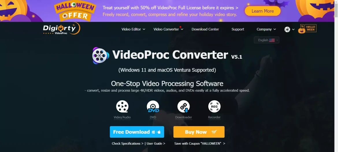 برنامج VideoProc هو برنامج معالجة فيديو كامل متاح لنظامي التشغيل ويندوز و macOS. يمكنك استخدام برنامج VideoProc لتحويل وتغيير حجم ومعالجة مقاطع الفيديو الكبيرة والصوت وأقراص DVD بدقة 4K / HDR.