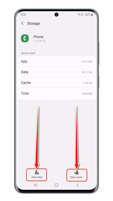 - اضغط على خيار “تخزين” واختر “مسح البيانات” و”مسح ذاكرة التخزين المؤقت“.