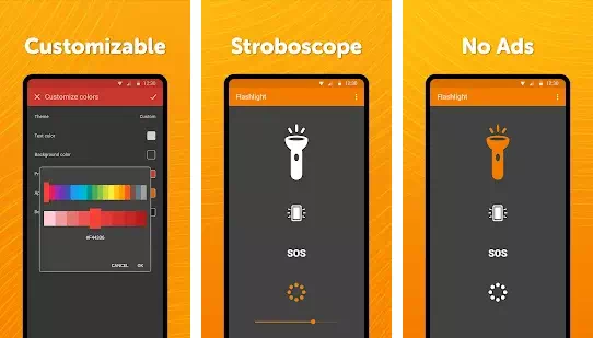 فهو مثل تطبيق Color Flashlight ، حيث يتيح أيضًا للمستخدمين تحديد الضوء إما من شاشة الهاتف أو فلاش LED. بصرف النظر عن ذلك ، يوفر تطبيق Flashlight أيضًا للمستخدمين مميزات مفيدة أخرى مثل مؤقت المصباح اليدوي والأدوات وغير ذلك.