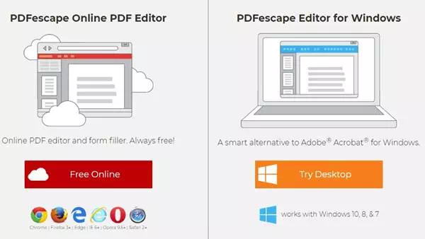 يعد PDFescape أداة تحرير PDF مقدمة على الانترنت يمكنك استخدامها مجانًا. وسبب ذلك أن الإصدار عبر الإنترنت من PDFescape مجاني ، ويتيح لك تحرير ملفات PDF ، والتعليق على مستندات PDF ، وملء نماذج PDF ، وإنشاء نماذج PDF جديدة ، وغيرها المزيد. يحتوي أيضًا على إصدار سطح مكتب يعمل فقط مع أنظمة تشغيل الويندوز مثل (ويندوز 10 – ويندوز 8 – ويندوز 7).