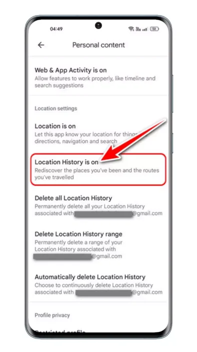 3. تأكد من تشغيل سجل المواقع في خرائط جوجل