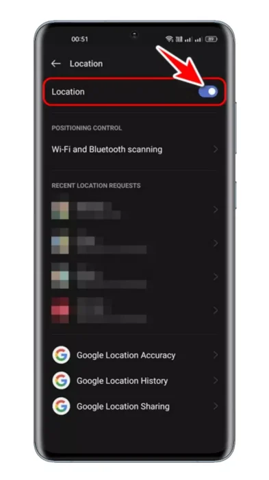 تعتمد خرائط جوجل على نظام تحديد المواقع العالمي (GPS) الخاص بهاتفك الذكي أو خدمات الموقع لتعمل. لذلك ، إذا توقف خدمة Google Maps Timeline عن التحديث من العدم ، فأنت بحاجة إلى التحقق مما إذا كنت قد قمت بتعطيل GPS على هاتفك الذكي.