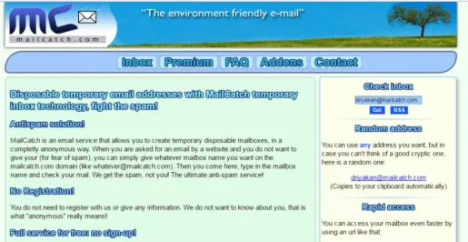 عندما يُطلب منك بريد إلكتروني عن طريق موقع أنترنت ولا ترغب في إعطائه (خوفًا من البريد العشوائي) ، يمكنك إعطاء أي اسم صندوق بريد تريده في مجال mailcatch.com (مثل أيا كان mailcatch.com@).