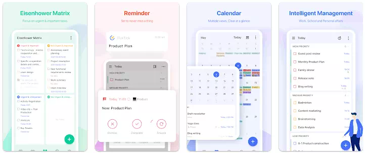 يعد تطبيق TickTick أحد أفضل بدائل تطبيق Wunderlist التي يمكنك استخدامه على أجهزة الاندرويد. حيث أنه تطبيق قائمة مهام بسيطة وفعالة وتطبيق لتدوين الملاحظات. يساعدك التطبيق على وضع جدول زمني وإدارة الوقت والتركيز.